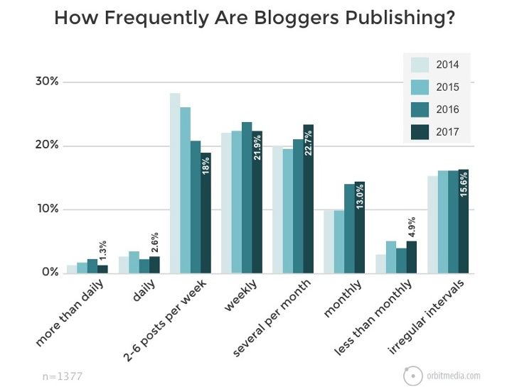 Give yourself enough topics for at least a month or two. If you’re publishing three posts per week, you’ll want to aim for at least 12 to 24 new ideas.
